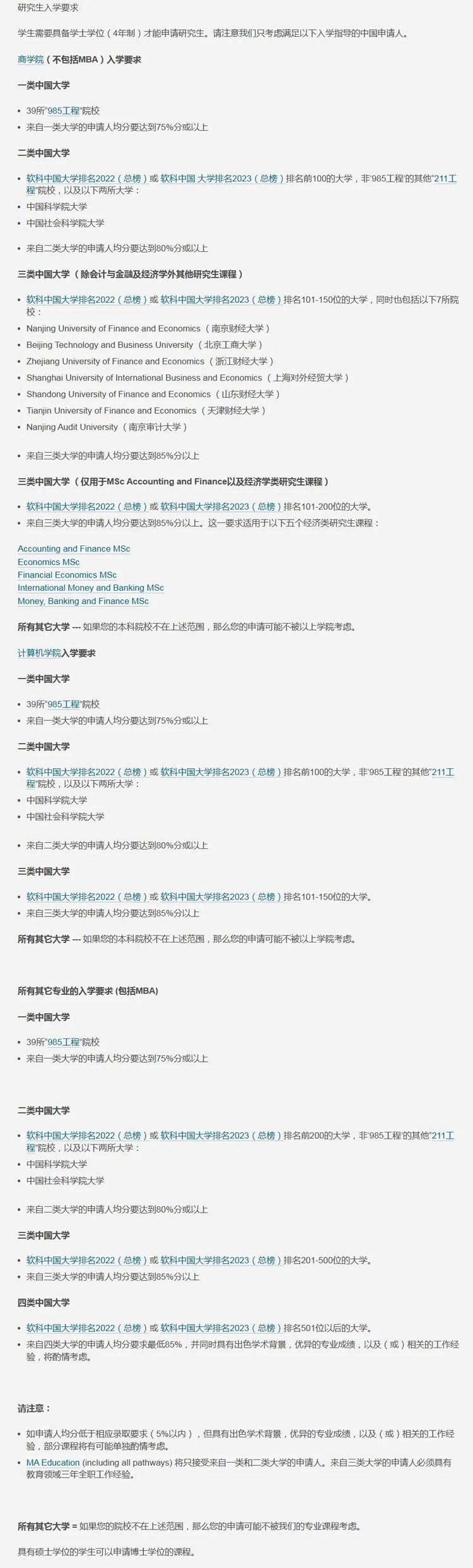 需要注意的是,愛丁堡大學有自己的錄取list,不同院校list對應不同的成績要求,所以大家一定要提前了解清楚具體要求!